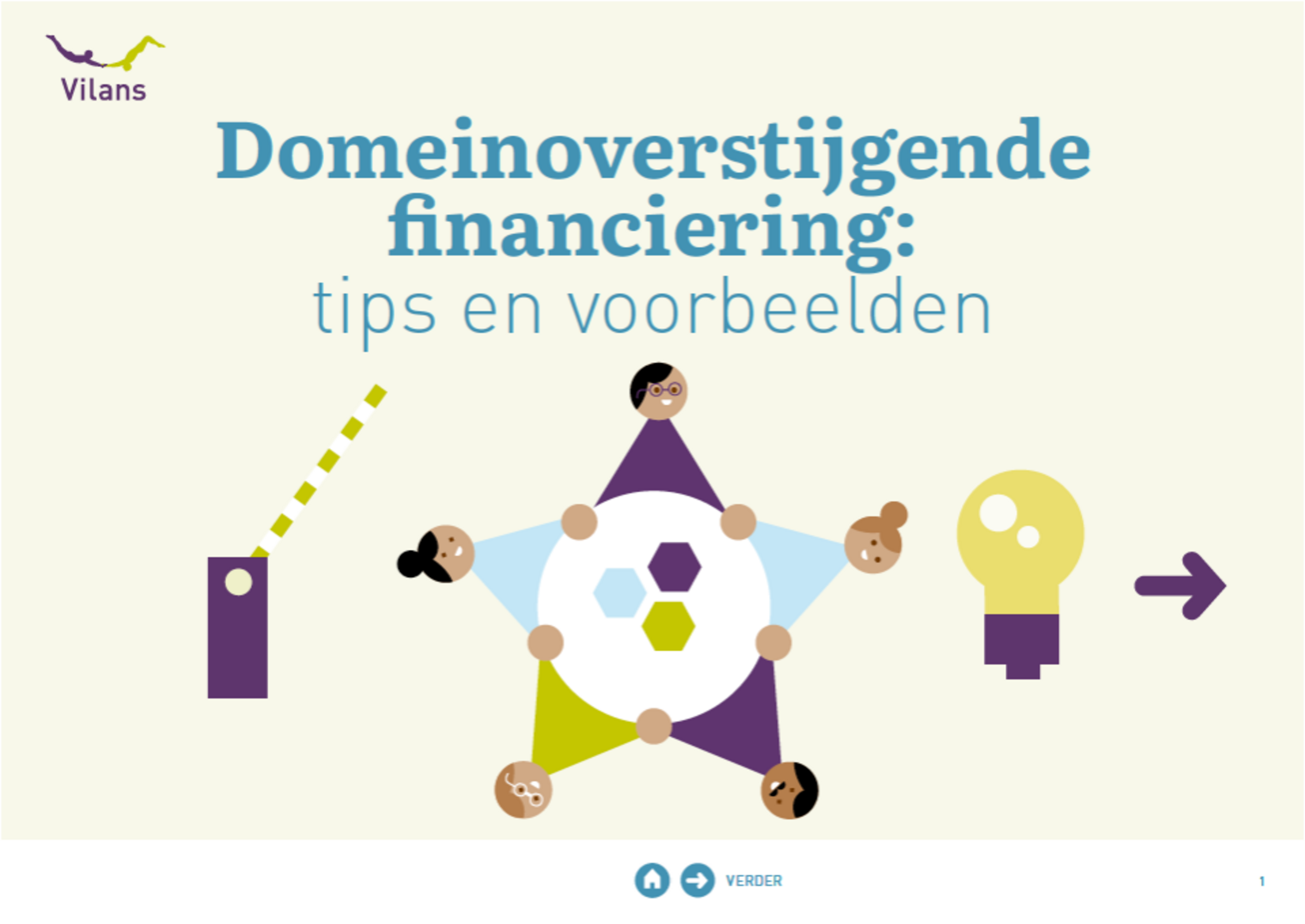 In de publicatie 'Domeinoverstijgende financiering: tips en voorbeelden' geeft Vilans, kennisorganistie voor zorg en ondersteuning, een overzicht van geleerde lessen, met name wat de experimenten leren over financiering en bekostiging. Het doel van de publicatie is laten zien hoe het staat met het financieren en bekostigen van domeinoverstijgend samenwerken en om aan te tonen dat er oplossingen bestaan die binnen de eigen invloedssfeer liggen.